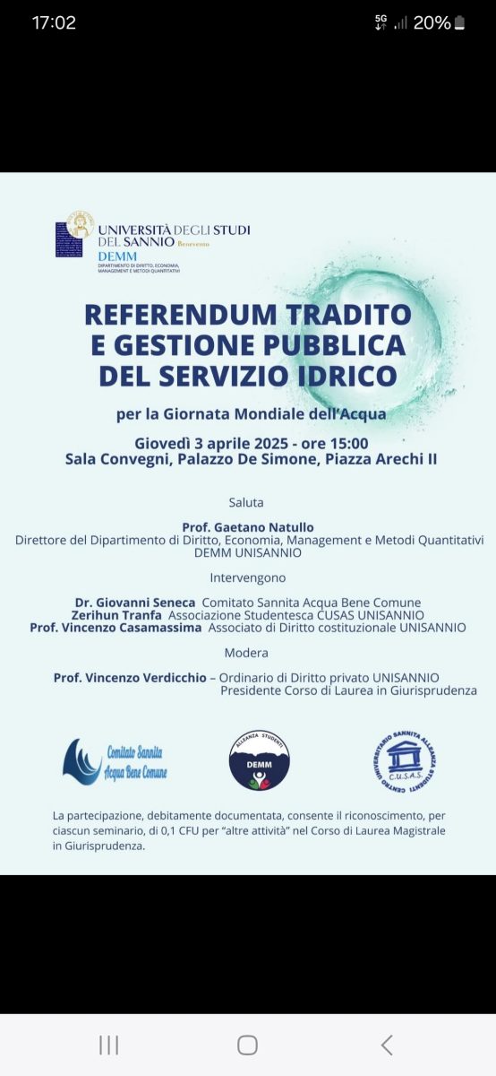 Data: Sabato 5 aprile 2025 Benevento – Nel pomeriggio di sabato 5 aprile 2025, centinaia di cittadini si sono riuniti a Benevento per dar vita a un corteo pacifico ma fortemente sentito, volto a manifestare una profonda e giustificata indignazione contro una vicenda che […]
