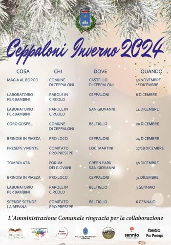 Sarebbe difficile elencare ogni singolo evento che animerà il paese durante questo periodo, ma ciò che è certo è che Ceppaloni e le sue frazioni saranno il cuore pulsante delle festività natalizie del Sannio, un invito a visitare il borgo e scoprire le sue bellezze storiche, culturali e naturali. La speranza è che questi eventi possano attrarre non solo i cittadini del paese, ma anche visitatori provenienti da tutto il Sannio e oltre, dando così ulteriore visibilità al territorio.
