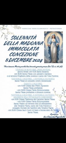 Pietrastornina con fede e devozione celebrerà la Solennità della Madonna lmmacolata Concezione. dI Giovanni Russo